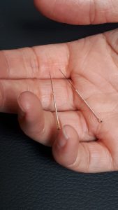 Tijdens een acupunctuurbehandeling wordt er gebruik gemaakt van verschillende soorten naalden. Deze verschillen in dikte en in lengte. Dit is afhankelijk van de locatie waar de naald geprikt wordt. Er wordt mij regelmatig de vraag gesteld of acupunctuurnaalden hetzelfde zijn als de naalden die gebruikt worden tijdens dry-needling. Het antwoord is: nee. Acupunctuurnaalden zijn dunner en korter. Op bovenstaande afbeelding kunt u zien hoe groot de acupunctuurnaalden zich verhouden tot een pen.